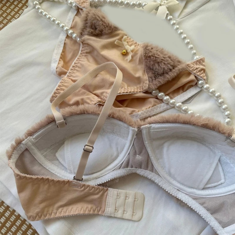 The PlushySet 2-Piece Lingerie Bundle combines soft faux fur, playful embroidery, and a supportive fit for the perfect blend of cozy and cute.